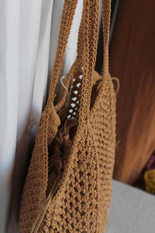 An easygoing essential that fits right in with the Mui The Label wardrobe — this crochet tote brings texture, charm, and practicality in equal measure. Soft yarn construction gives it a relaxed, effortless look, perfect for everyday errands or weekend getaways.