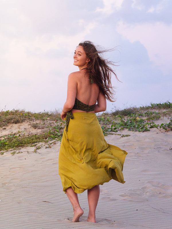 Designed in Hoi An and handcrafted in our Danang studio, this halter top is all about effortless allure. The soft green marble print feels fresh and fluid, catching the light beautifully with every movement. A tie-front detail lets you adjust the fit just how you like it, while the halter neckline highlights the shoulders and keeps the silhouette clean and flattering.