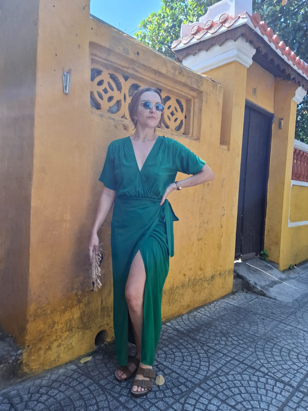 Raglan Sleeve V-Neck Wrap Maxi Dress
