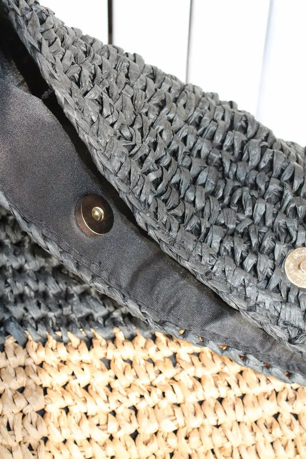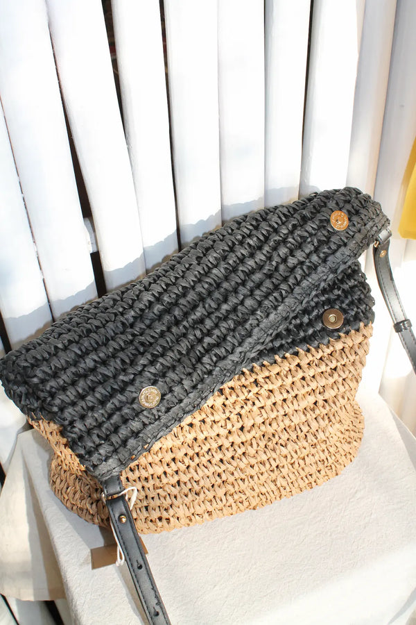 Effortlessly chic with its black-and-natural two-tone weave, this straw crossbody brings a touch of polish to relaxed styling. The magnetic snap closure and lined interior keep it practical, while the adjustable strap makes it easy to wear wherever the day leads.